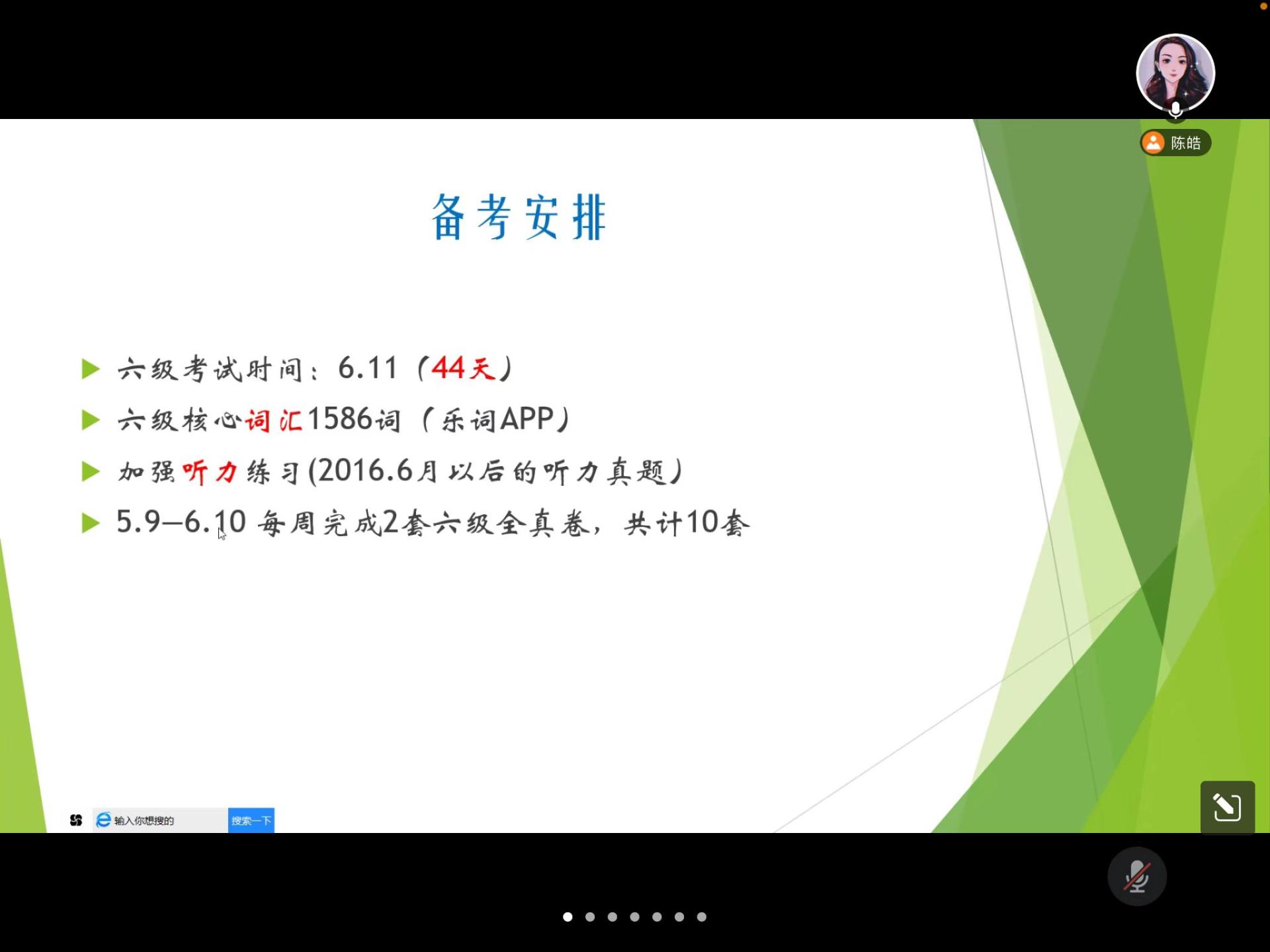 为更好地帮助学生备战大学英语六级考试,4月27日下午,开元网站登录入口通过线上腾讯会议举行了大学英语六级考试主题讲座。外语语言文学学院陈皓老师予以指导,全体报考六级学生聆听了讲座。