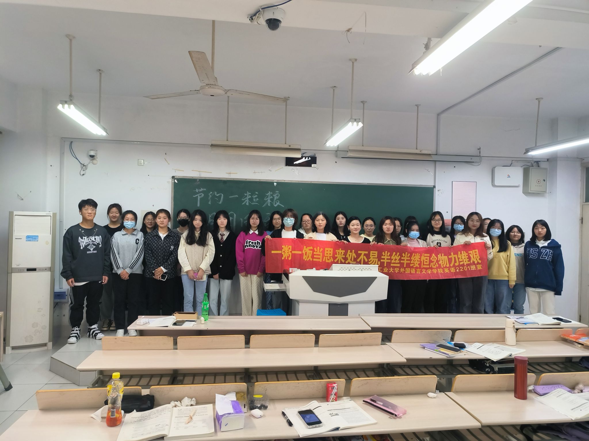 英语2201团支部的同学们踊跃分享了各自在学校发掘的美食,在定制的横幅签名来表明大家的决心并合影留念;英语2202团支部的同学们进行了一日三餐的光盘打卡,进一步抵制舌尖上的浪费;日语2202团支部的同学们向大家介绍了粮食对于国家安全的重要性,也介绍了我国为此做出的努力;德语2201团支部让本班同学分享一些珍惜粮食的小知识。