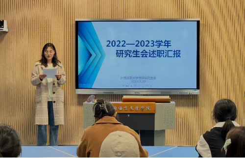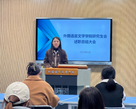 会议伊始,执行主席李莹从研究生会中心职能、工作回顾、总结反思、未来规划四个部分进行述职。过去一学期,院研究生会紧密围绕学院开展工作,在思想政治教育、学术航向引领、校园文化建设等领域继续发展积极作用,未来将持续推进我院研究生会改革,积极探索具有“外语特色”的品牌活动,努力为广大研究生同学做好服务。