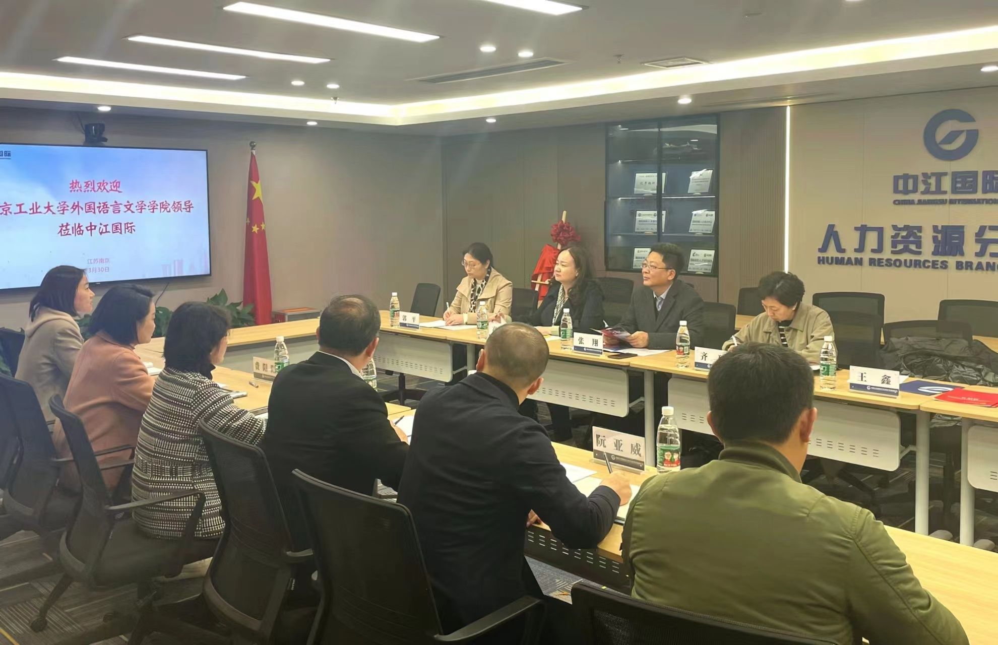为全力开拓外语类就业市场,做有宽度的就业,推进2023届毕业生实现充分高质量就业,3月30日下午,开元网站登录入口赴中江国际集团开展访企拓岗活动,举行就业创业实习实践基地签约授牌仪式。中江国际集团人才发展有限公司副总经理刘怡、副总经理费阳阳,开元网站登录入口党委书记张翔、党委副书记高洁等参加仪式。仪式由中江国际邮轮中心管理主任屠小刚主持。