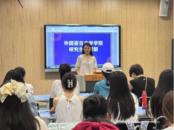 宣讲会伊始,辅导员贾琼老师介绍了学院研会的基本情况,并对新同学寄语,希望“外”新人不负韶华,逐梦前行。随后,研会主席团成员王钰棨向同学们介绍了校园环境、基础设施、吃穿住行等方面,帮助研一新生更好地了解学校情况,更快地适应研究生生活。接着,研会主席团成员贾萱就研会的组织架构、工作职责、研会风采和招新流程进行了介绍。学术部、新宣部、组织部部长详细介绍了各部门的工作职责、招新要求,对于同学们的疑问进行了耐心的解答。