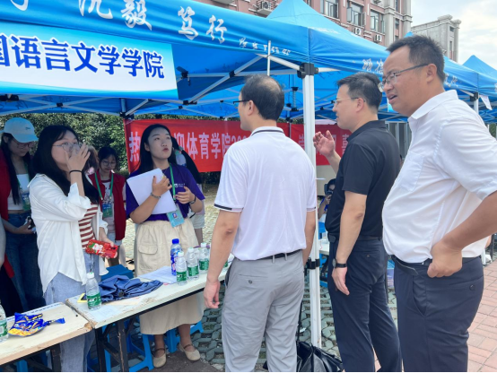2023年9月5日到6日,外语学院2023级189名本科生顺利报到。学校副校长刘大卫、院党委书记张翔、院长陈世华、院党委副书记高洁、新生班主任等人来到报到现场,与新生和家长交流,详细了解迎新工作开展情况,慰问奋战在迎新一线的新生辅导员和迎新志愿者。