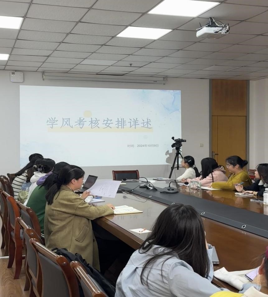 10月9日,开元网站登录入口在外中707召开2024级新生学风考核安排推进会,旨在进一步推动外院优良学风的形成,营造自律上进的学习氛围,同时部署新学年的学风考核工作。会议由院新生辅导员范楚晗主持,全体学工助理团学风建设部成员、学生会学习部成员、24级新生助理班主任及各新生班级学委参与。