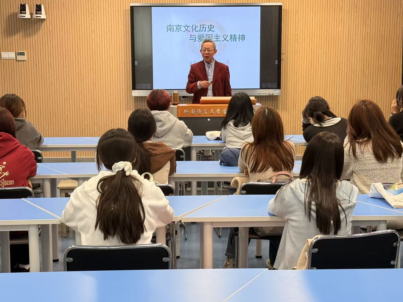 为引导新生传承历史文脉、弘扬爱国主义精神,我院于11月5日举办“南京文化历史与爱国主义精神”专题讲座,特邀校关工委成员、原外语学院党委书记刘思华老师担任主讲。外语学院关工委副主任乔海青、新生辅导员王鑫、2025级部分学生代表参加本次座谈会。