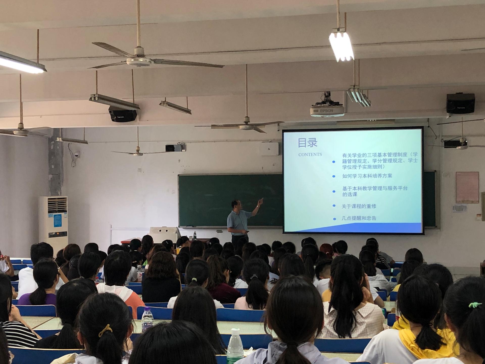 9月10日下午,教学事务部皋春老师在仁智教学楼为外语学院2019级新生做了题为“开元网站登录入口如何顺利完成大学学业”的讲座。讲座由外语学院副院长李智主持。
