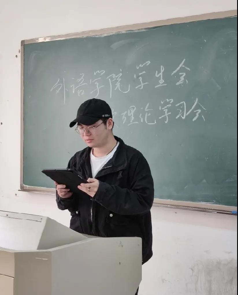 最后,吴添豪同学对本次会议内容进行了总结,提出了新的期望与要求,强调思想政治引领的必要性,鼓励大家在新的时代背景下不忘初心、矢志不渝,争做中国特色社会主义事业的合格建设者和可靠接班人。