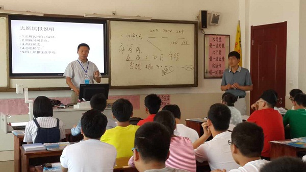 招生准备前期,学院全体招生组成员参加了我校招生工作组集体培训会议,并对相关招生资料作进一步学习;同时学院党政领导班子对今年学院的招生宣传工作进行统筹协调,周密部署,制订了全员参与、全面覆盖、全线推进的招生政策。在外语学院党委副书记佴康、副院长胡元江的带领下,兵分两路,分别于24日下午,第一时间赶赴灌云和灌南地区展开工作。